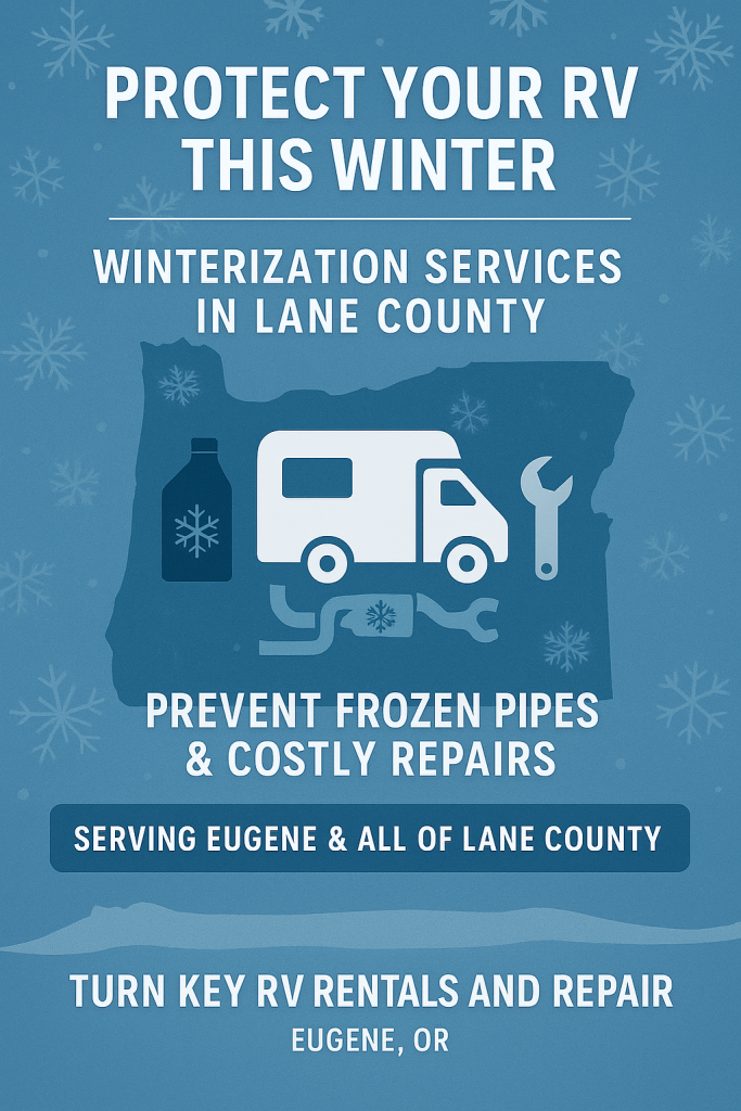 We’re based in Eugene and proudly serve Springfield, Cottage Grove, Veneta, Junction City, and the entire Lane County area. With years of RV repair experience, we know exactly what your rig needs to survive (and thrive) this winter.