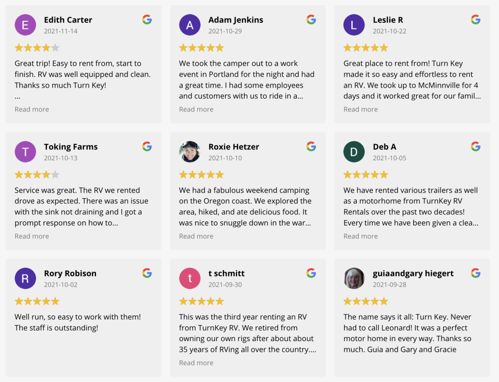 We proudly offer Turn-key RV at Turn Key RV rentals in Oregon.